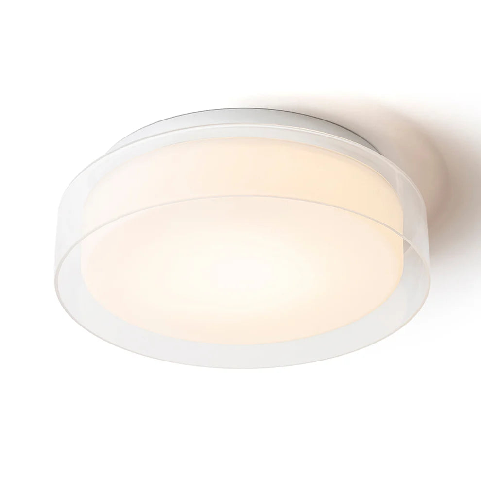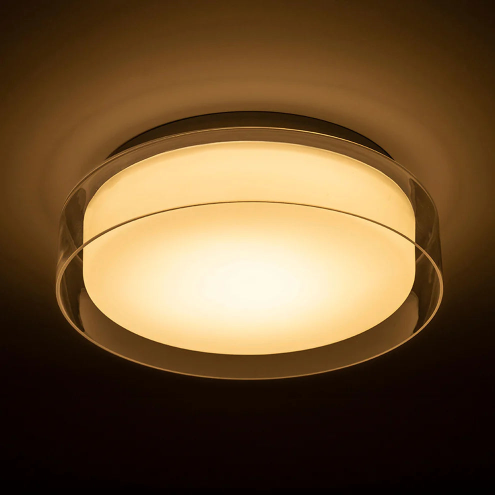 Sorgen Sie mit der Marina Halo 30 für eine elegante, gleichmäßige Lichtverteilung in jedem Raum – einer minimalistischen Deckenleuchte mit doppeltem Glasschirm. Die klare Außenschicht und der weiche Opal-Innenschirm erzeugen ein warmes, diffuses Licht, das den Raum stimmungsvoll erhellt.