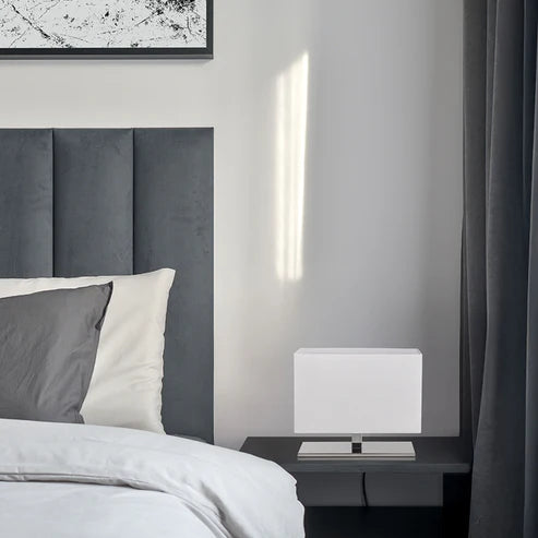 De Vista Table 30 – Tafellamp combineert elegantie met subtiel design. Het armatuur heeft een textielen kap die zorgt voor een warme en diffuse lichtverdeling, en is uitgevoerd in een moderne chroom/witte kleurstelling. De lamp is geschikt voor gebruik met een E27-fitting (max. 15 W LED), waardoor je zelf de lichtkleur en intensiteit bepaalt.